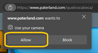 Don't forget to give permission of camera use when the pop-up is presented on the screen, as in the following example: